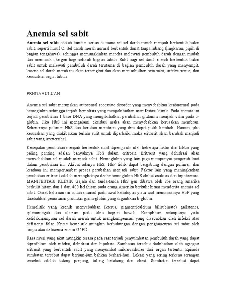 Anemia sel sabit merupakan kelainan darah yang terjadi akibat kelainan genetik yang ditandai dengan bentuk sel darah merah yang abnormal. Kerentanan terhadap infeksi atau penyakit. Gejala Anemia Sel Sabit Berikut ini gejala umum dari anemia sel sabit yaitu.
